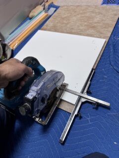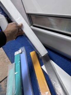 写真のようにドアパネル面材が無い状態になってしまうため、無い部分を後から作成する作業を行いました。
