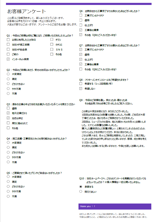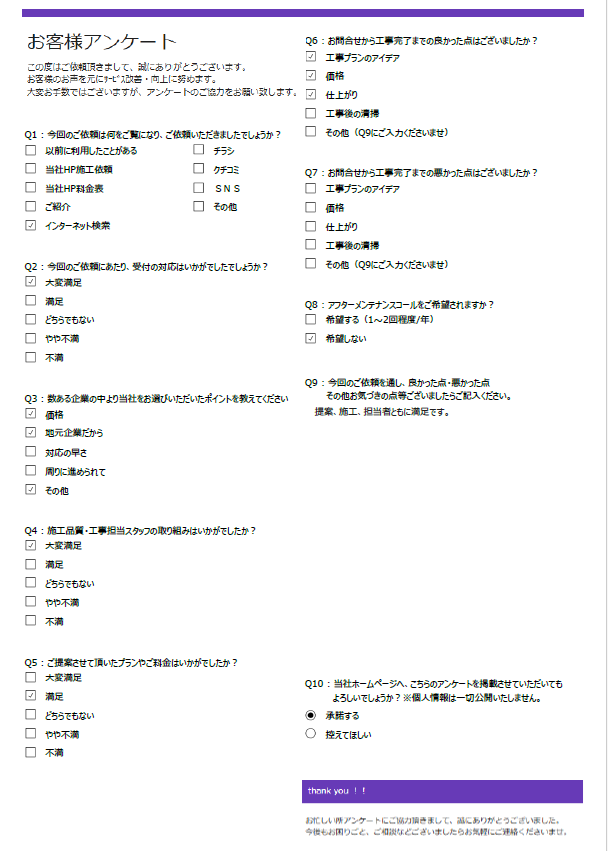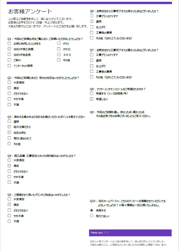 お忙しいところ弊社アンケートにご回答くださいまして、ありがとうございました。