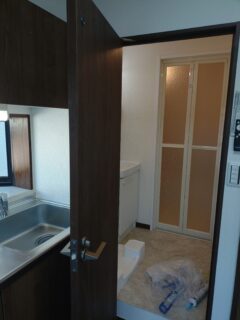 キッチン交換/浴室・脱衣所の新設/防水パン新設/トイレ交換/テレビドアホン交換/分電盤交換/ルームエアコン2台交換/和室の洋室化を行いました。