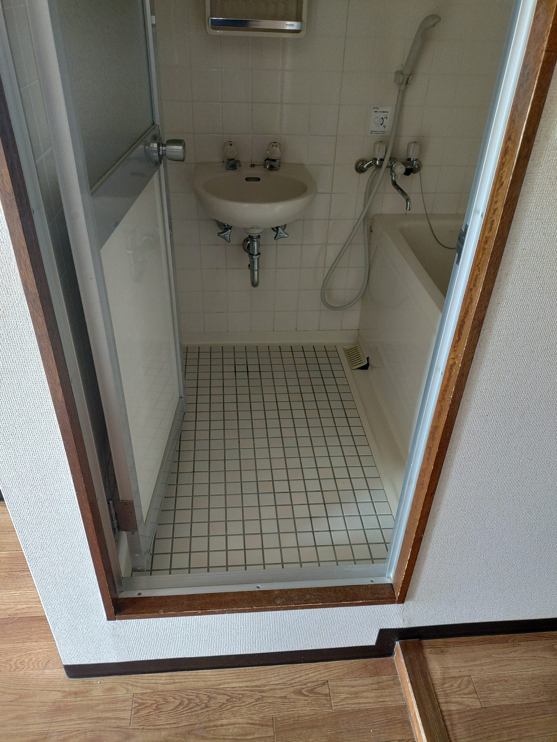 既存の防水パンはキッチンの隣に設置しておりました。