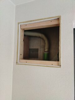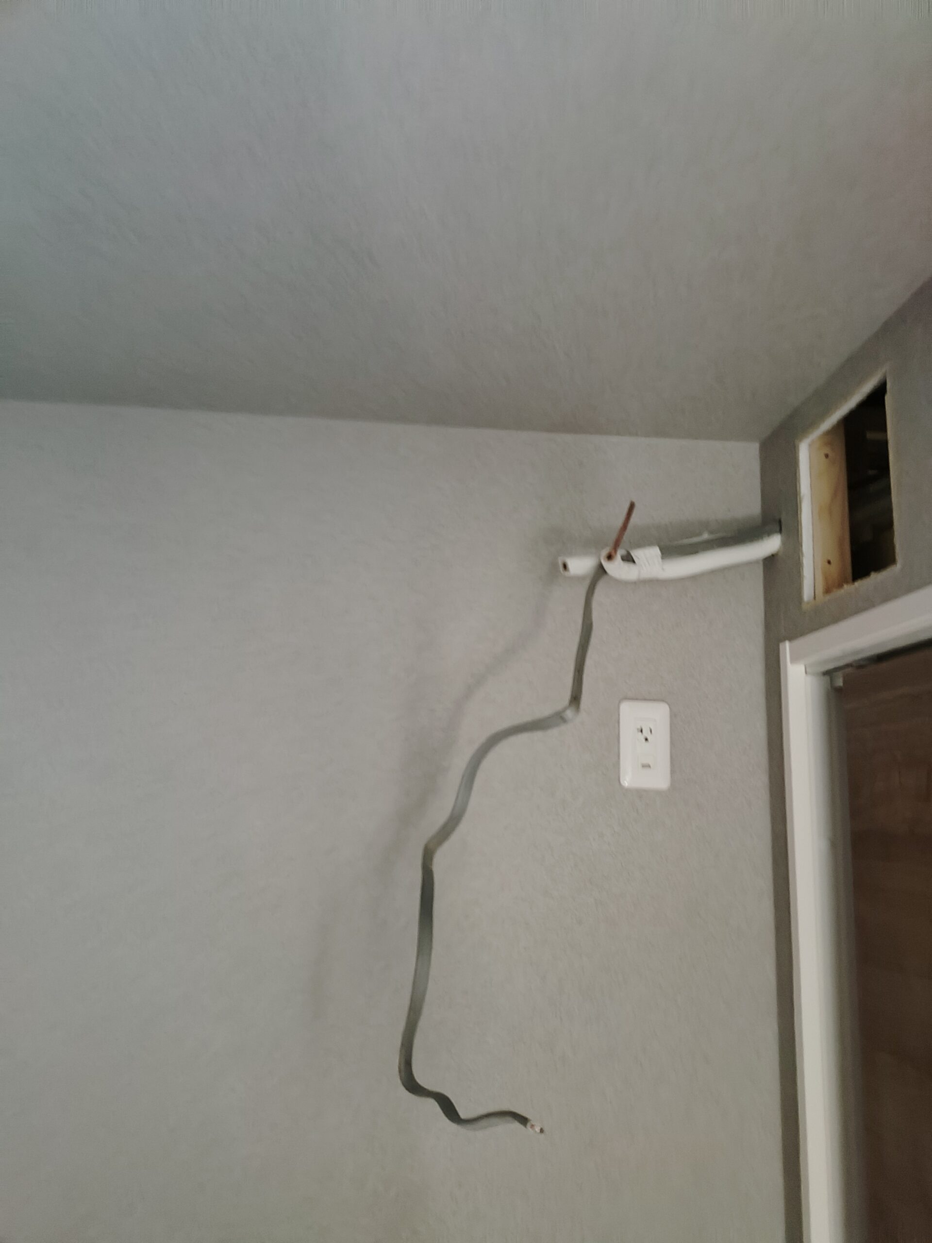 今回は室内の壁内に配管スペースがある隠ぺい配管のため、通常の壁穴あけ工事ではなく、内部の状況確認から始めます。