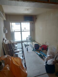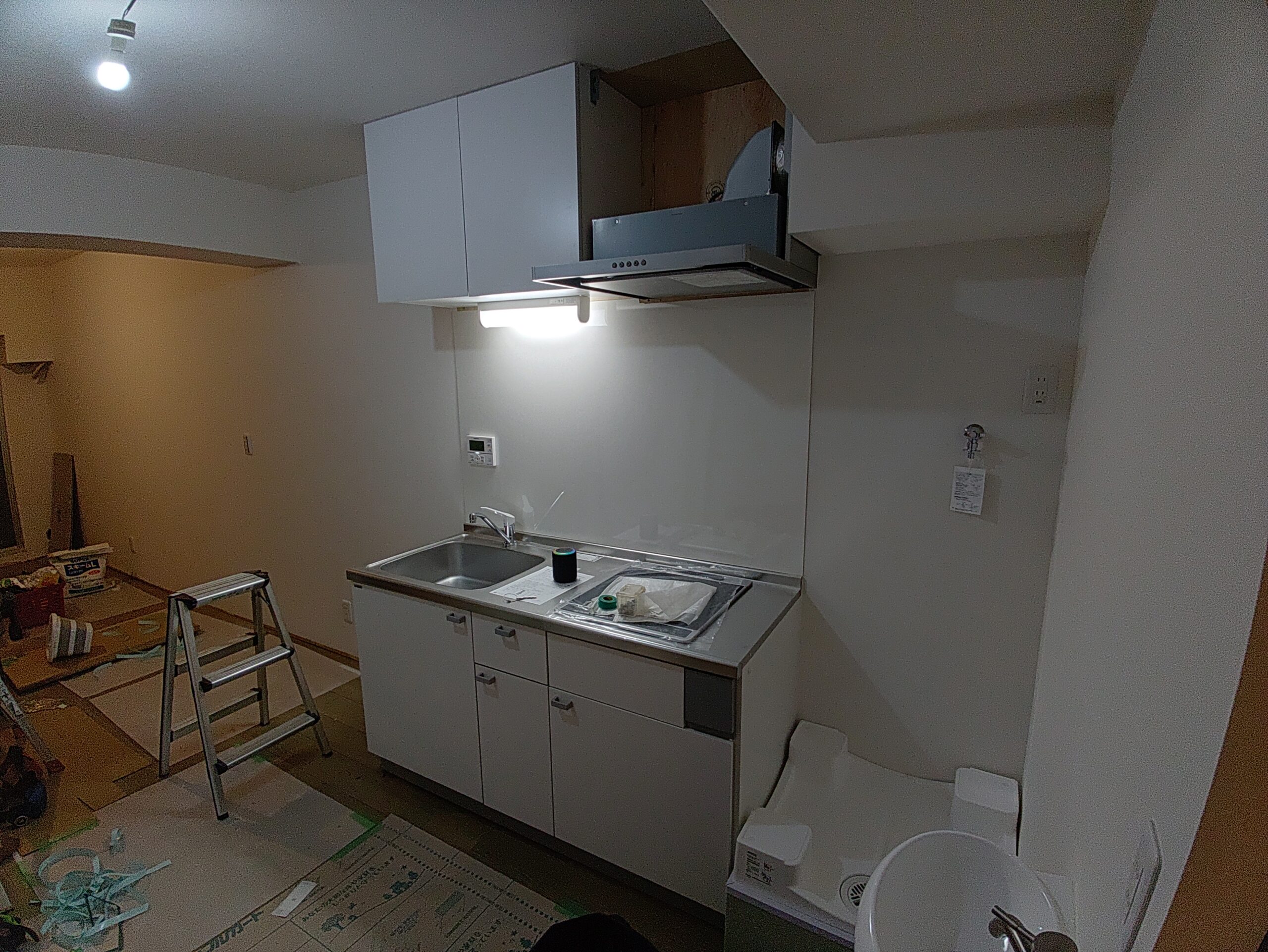 今回はマンションの1室のキッチン・浴室・トイレ・給湯設備・ルームエアコン・電気設備まで一新するフルリフォーム工事を行いました。