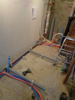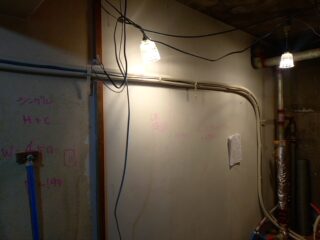 エコキュートとルームエアコン用の配管の切回しも行います。