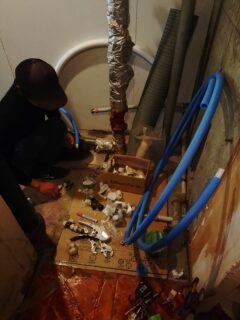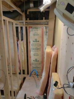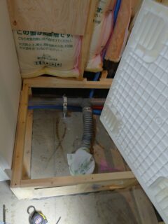 既存のユニットバスを撤去後、上記でご紹介した給湯管・給水管・排水管の新設と合わせて、浴室乾燥機のダクトを新設工事を行います。