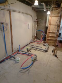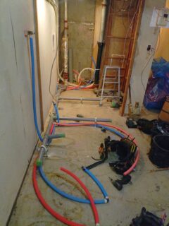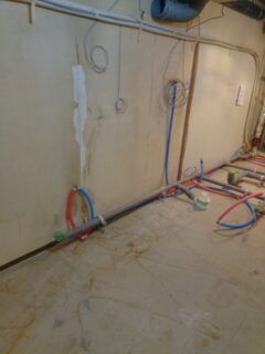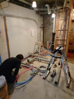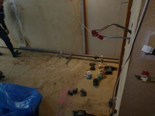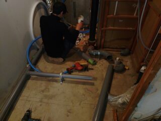 新たに設置するキッチン/防水パン/トイレ/浴室 に合わせて給排水配管を切回し・新設します。