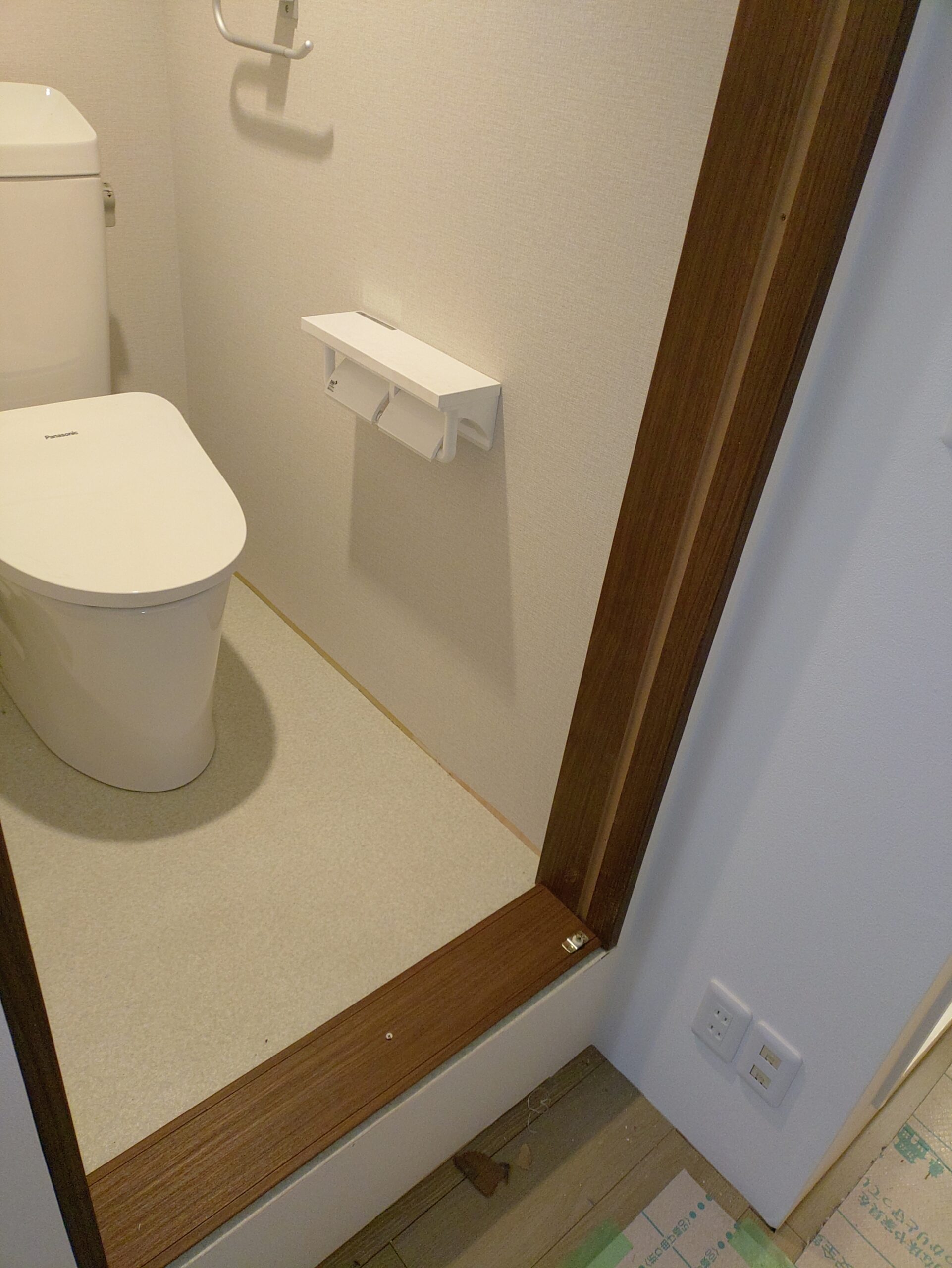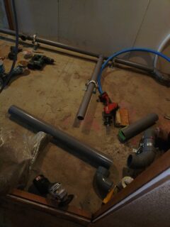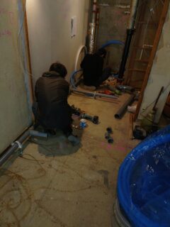 既存のトイレを撤去して、新たに給水管と排水管の新設を行い、床フランジ・排水ソケットを設置してトイレ本体を設置します。